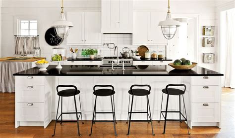 White Kitchen Black Stools - Browse a large selection of bar stools and counter stools in a wide range of sizes, finishes. Black bar stools add contrast and strong character to your living room. Shop online for white black bar stools and counter stools. This farmhouse kitchen boasts gold pendant lamps over a kitchen island with a white countertop, a light wood floor, and black.