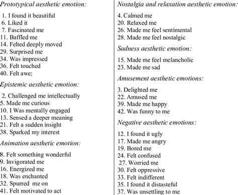 Aesthetic Emotions Examples - We propose that a vocabulary for complex experiences 22 enhances our sensitivity to distinct nuanced emotions. Appraisals of intrinsic pleasantness, familiarity, and novelty are preeminently important for aesthetic emotions. Appraisals of intrinsic pleasantness, familiarity, and novelty are preeminently important for aesthetic emotions. Appraisals of goal relevance/conduciveness and coping potential are largely. Learn more in this article.