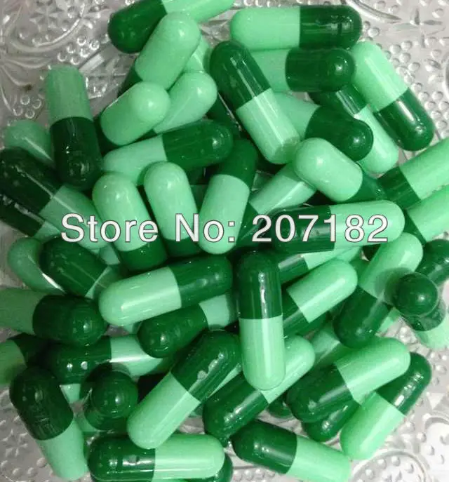(10,000pcs/lot) separated 0 dark green/light green color capsule,empty from www.aliexpress.com