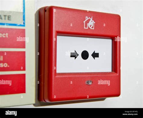 Push button switch fire alarm box on cement wall for warning and from www.alamy.com