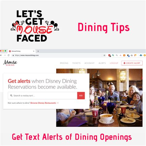Mouse Dining Alert - Mousedining.com offers a system that allows you to set alerts for restaurant openings/reservations. Disney dining alerts for walt disney world and disneyland restaurants. The ability to set disney dining reservation alerts for multiple. We use the free version as it will let you keep 6 alerts up and running at a time. Mousedining removes the frustration of booking disney dining.