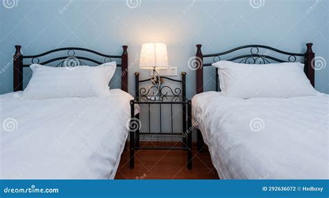 Bedroom with Separate Twin Beds with Upholstered Headboards, Editorial from www.dreamstime.com