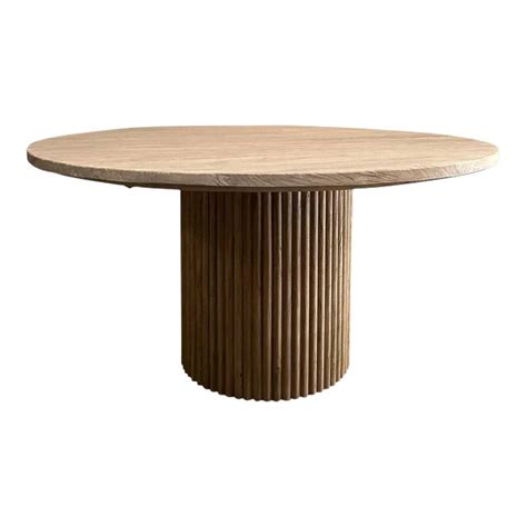 Custom Made Fluted Base Round Dining Table in Solid Elm Wood Chairish from www.chairish.com