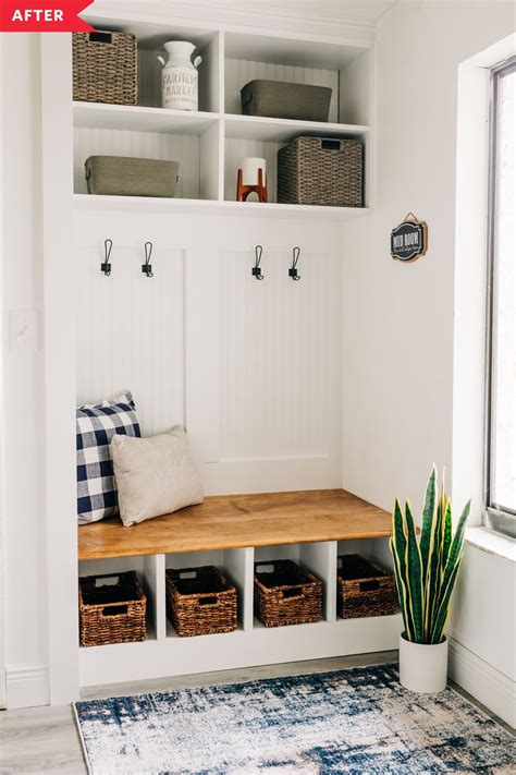 Modern Entryway Bench with Hooks Large Coat Storage from www.pinterest.com