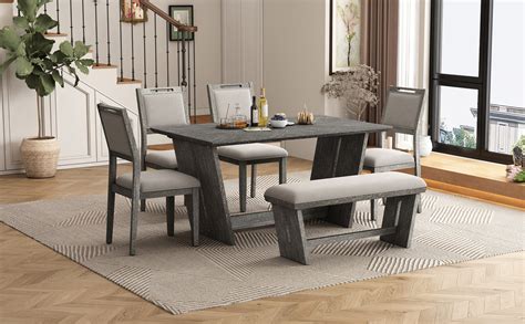 Shop extendable designs, wood benches, and farmhouse tables. The soft grey painted finish and washed oak tops give it a contemporary feel, while the trestle design and classic lines maintain its timeless elegance. Browse a large selection of dining room sets in a wide range of sizes, finishes and styles.