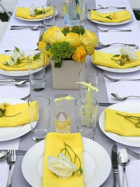 Yellow Themed Table Settings - See more ideas about table settings, table, table decorations. When it comes to adding a splash of color to your home, yellow is a fantastic choice. Discover recipes, home ideas, style inspiration and other ideas to try. Buy wholesale wedding supplies, decorations, table centerpieces, and party favors in bulk for the diy bride or event planner. Discover yellow tablescape ideas.