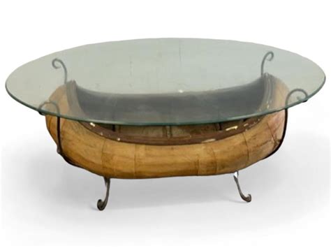 Lot Birch Bark Canoe Coffee Table Glass Top from www.randrauction.com