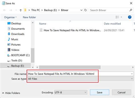How To Save Notepad File As HTML On Windows 10 from www.bitwarsoft.com