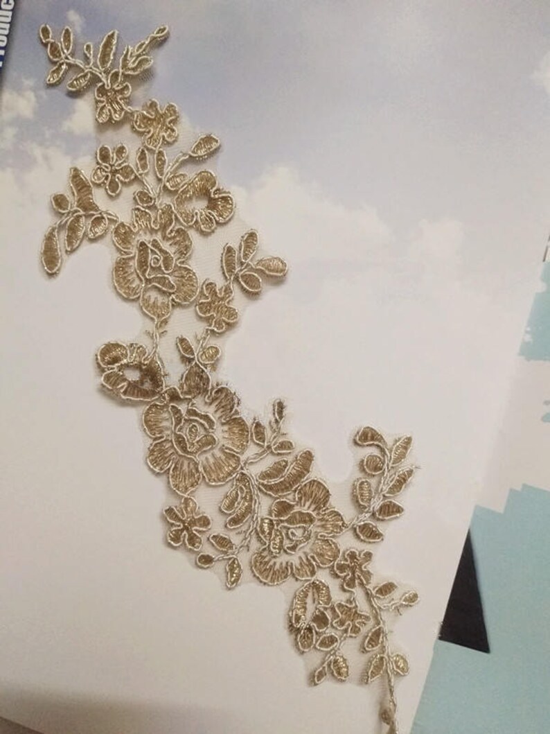 Gold Bridal Lace Applique Floral Embroidery Applique Venice Etsy Gold Fabric Applique For Sale Check out our gold fabric appliques selection for the very best in unique or custom, handmade pieces from our appliques & patches shops. Idongcai gold lace trim gold floral embroidered applique lace fabric trim for sewinggowns,cakes, diy, home decor (1.5. Check each product page for other buying. These include lace appliques, leaf appliques,. Vintage passementerie carries a vast selection of. Gold Fabric Applique For Sale.