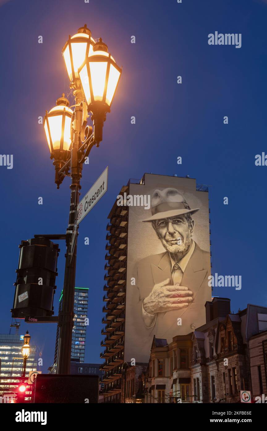 Leonard Cohen Mural at night, Montreal, Quebec, Canada Stock Photo Alamy