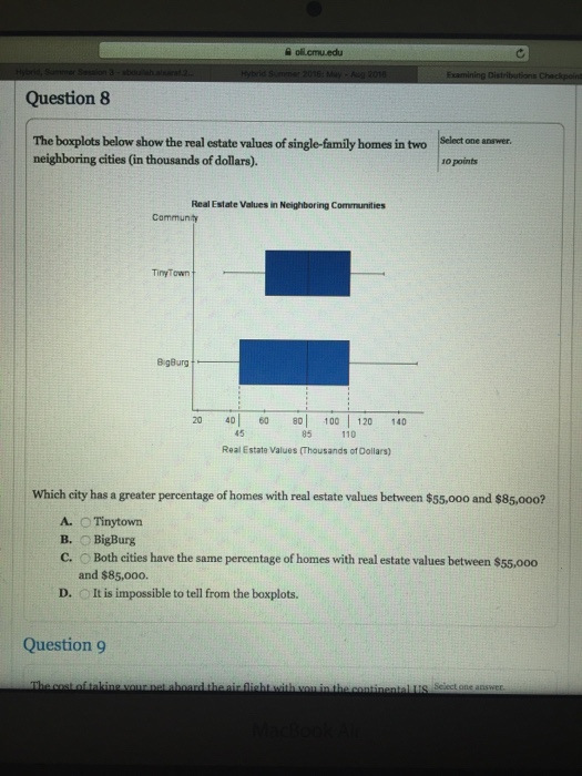 Solved The boxplots below show the real estate values of