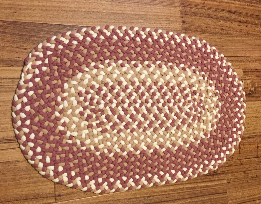 Hand Braided Oval Wool Rug 31 X 21 Etsy