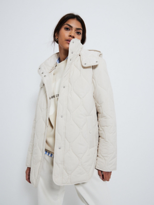 Cream Quilted Hooded Lightweight Jacket Women at ASDA
