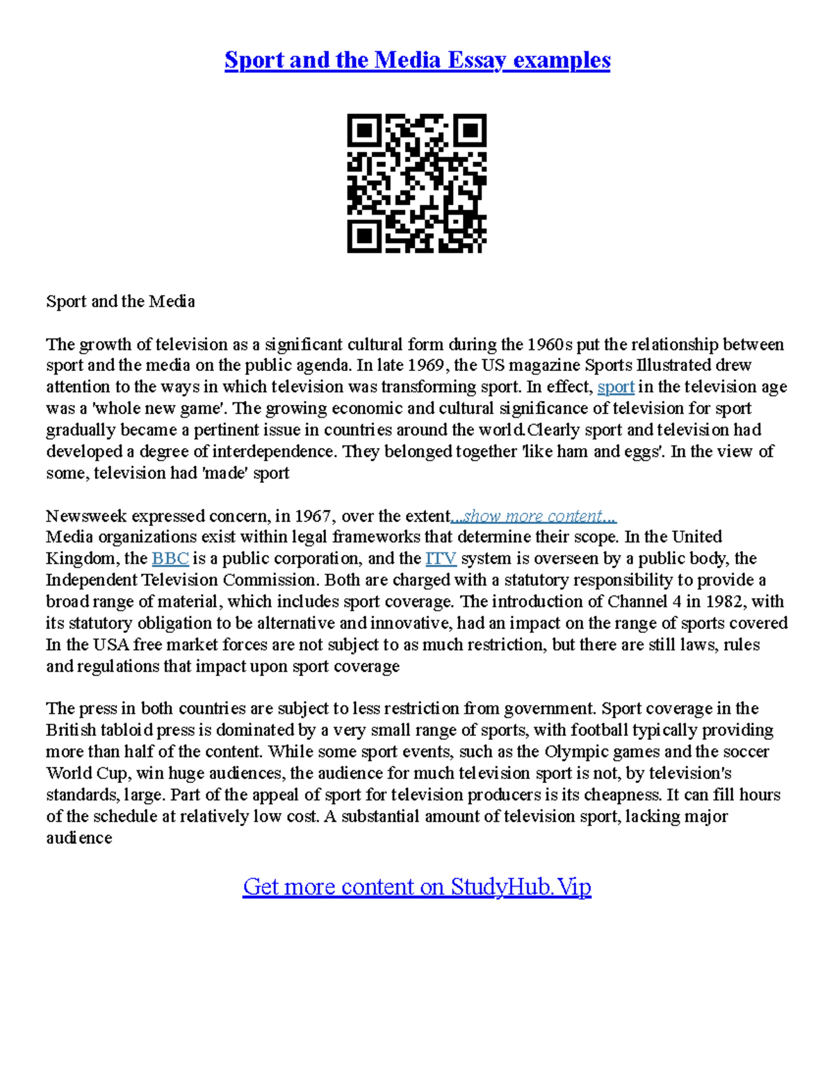 Sport Essay Topics Sport and the Media Essay examples Sport and the