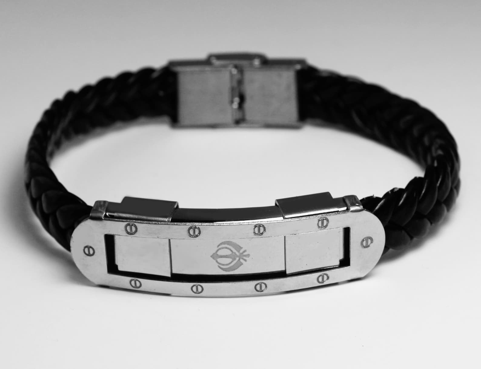 Symbol Bracelet SIKH KHANDA Personalised Mens Leather Braided Engraved