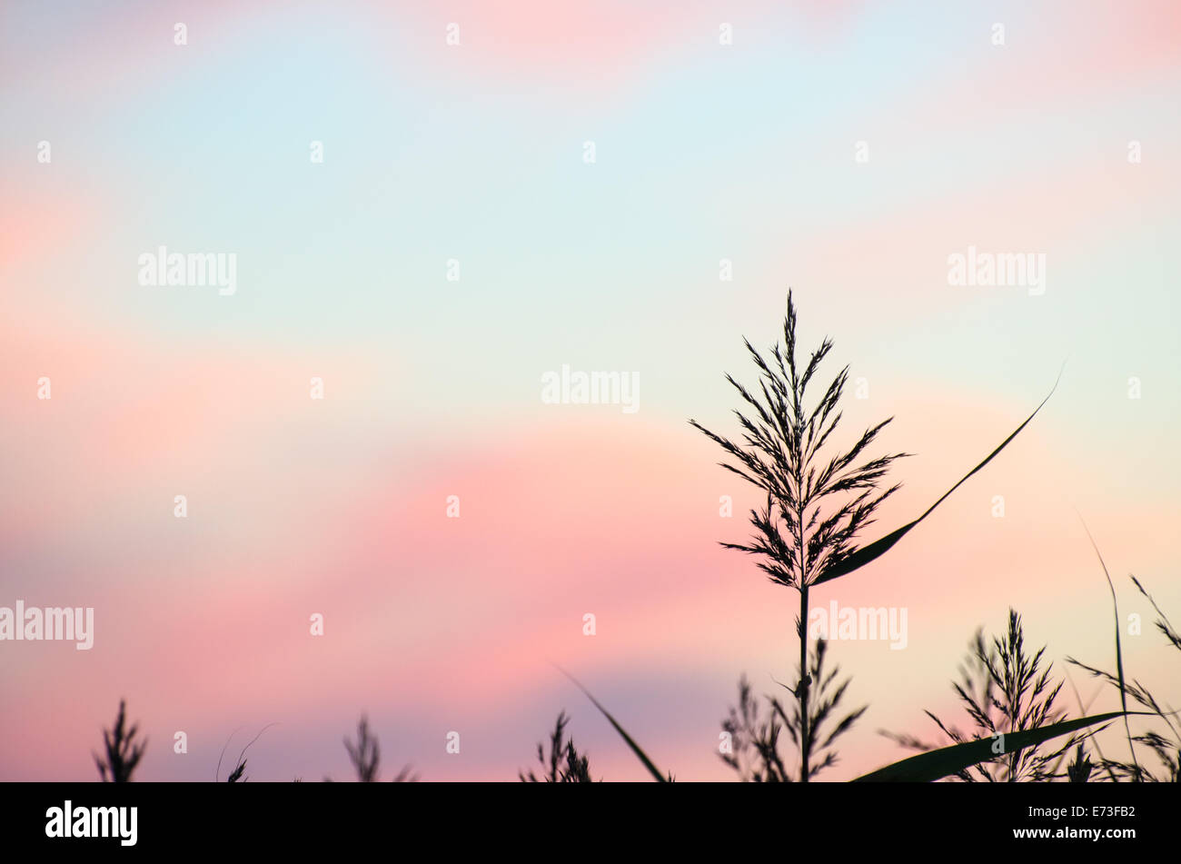 Reed flower at twilight with soft colored sky Stock Photo Alamy