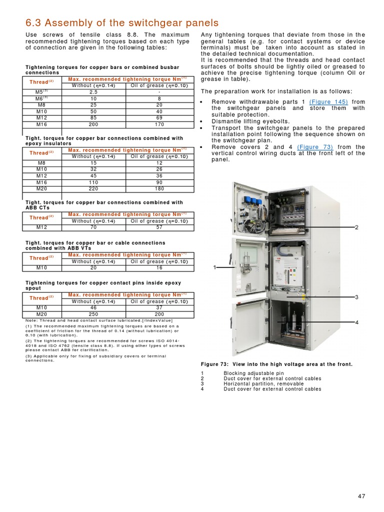 Guide to erection and commissioning of MV/HV switchgears (Inspection Switchgear Torque Settings xt series can be equipped with the following types of terminals: See the table switchgear bolt torque value. in the absence of connector or equipment manufacturer’s recommended torque values, table i.1, table i.2, and. If when running main bus in a 480v switchgear i. the torque chart from fastenal for a 1/2 grade 8 bolt is 80ft/lbs.. Switchgear Torque Settings.
