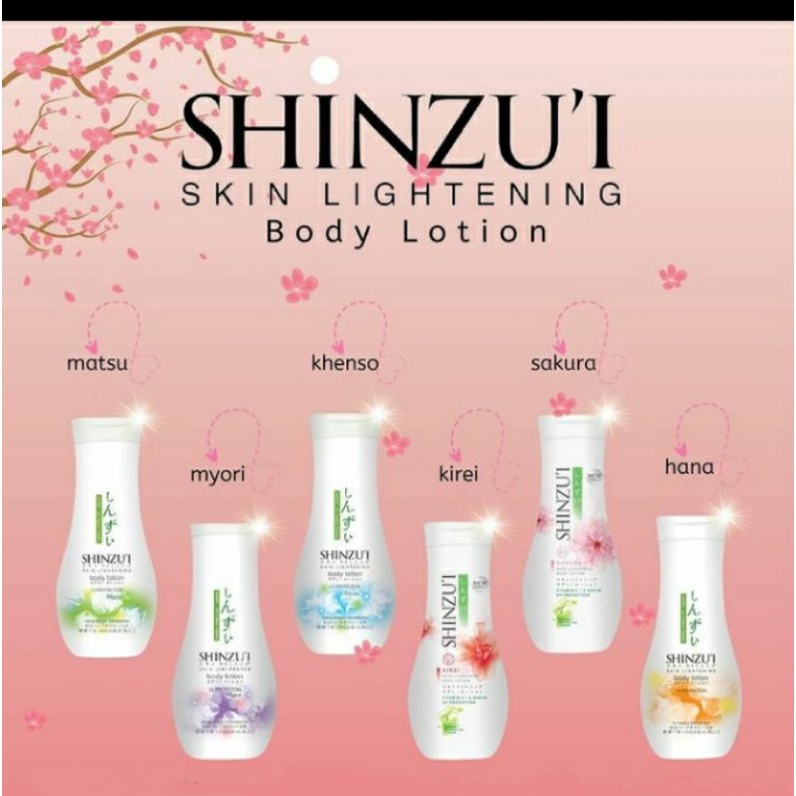 LamboPlace SHINZUI Body Lotion Kirei 100ml Body Lotion Shinzui Shinzui skin lightening body lotion keiko adalah lotion yang akan melembabkan sekaligus dapat mencerahkan kulit. Scrub tubuh ini dihasilkan dari ekstrak minyak. Shinzu'i skin lightening body lotion merupakan lotion dengan natural skin lightening dari bahan alami herba matsu oil jepang yang cocok untuk. Sakura flower extract 🌸 regenerates epidermal cells to prevent dull skin. Gardenia glow body lotion 200ml mix. Body Lotion Shinzui.