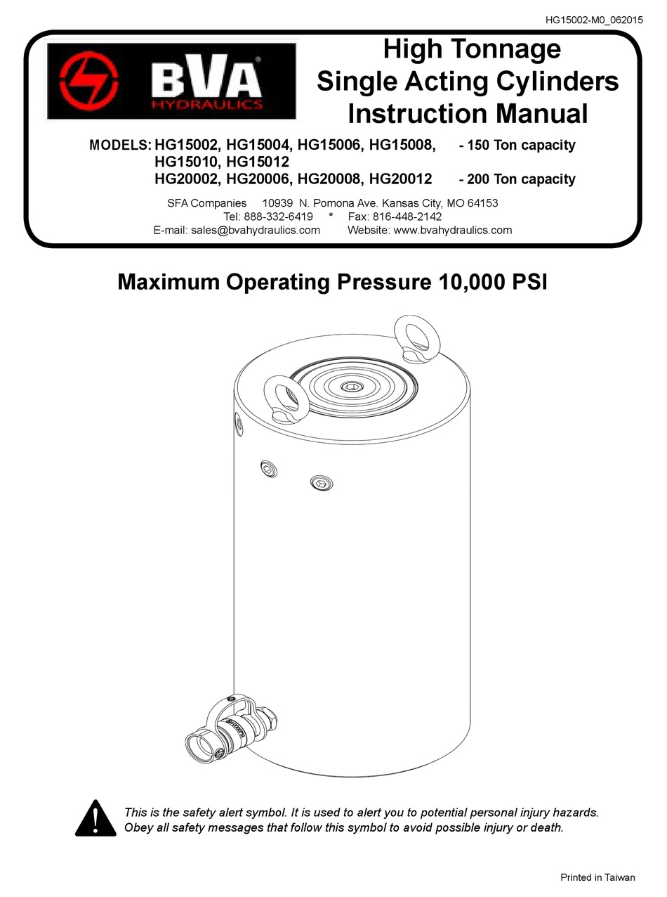 BVA HYDRAULICS HG15002 INSTRUCTION MANUAL Pdf Download ManualsLib
