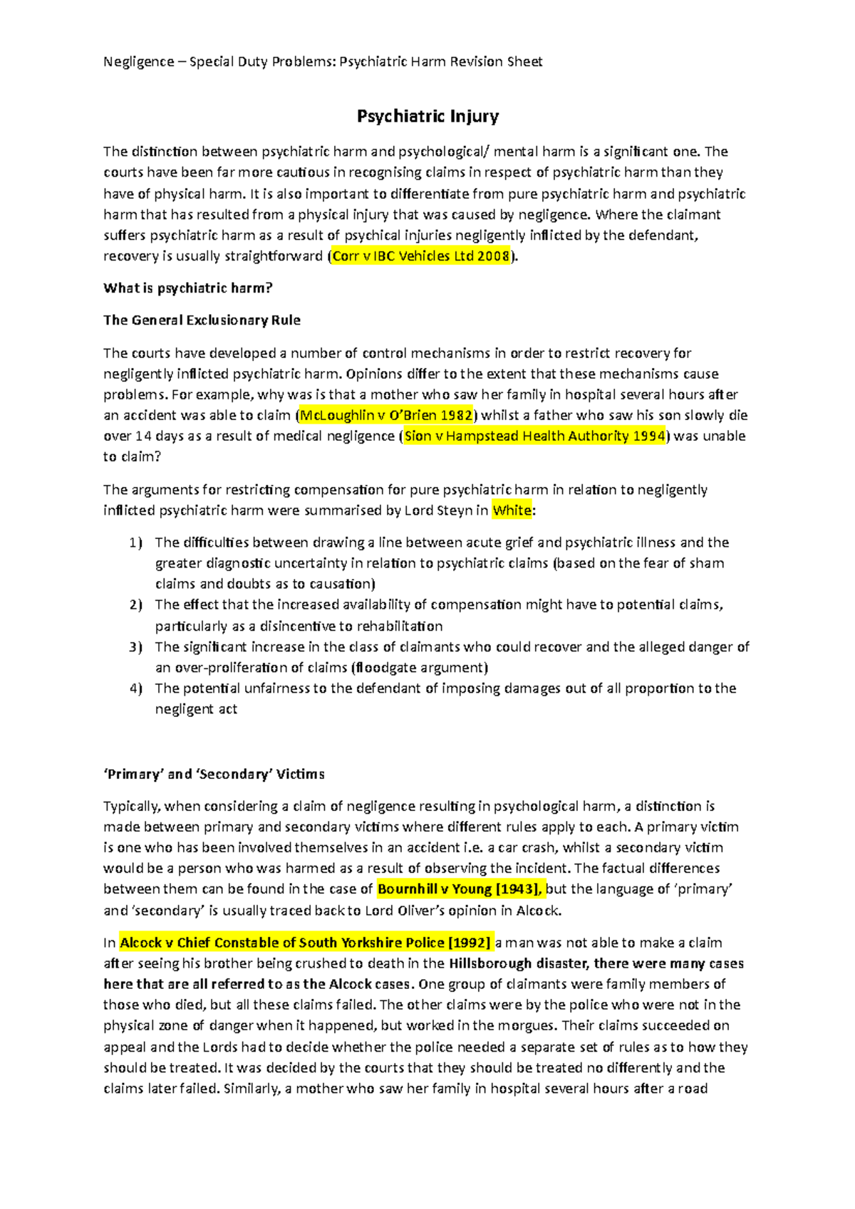 Psychiatric Harm Revision Notes Tort Law Revision Notes Psychiatric Psychiatric Harm Definition Law Uk The law on claiming for a psychiatric injury isn’t as simple as making a claim for a physical personal injury. Firstly, the current law requires anyone who is not a parent, child, spouse, or fiancé of the deceased or injured person to. In addition to the caparo test for. Psychiatric injury was defined as “a sudden assault on the nervous. Psychiatric Harm Definition Law Uk.