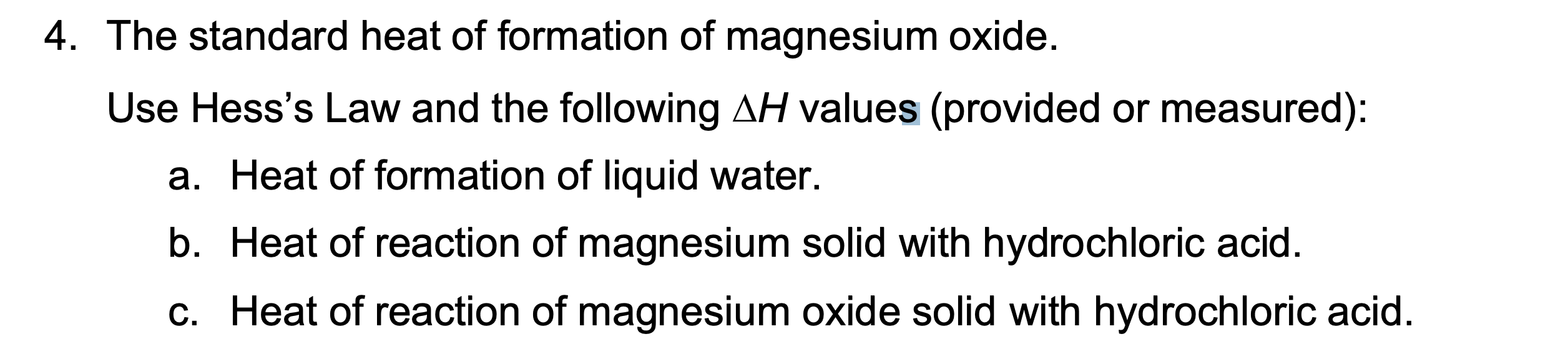 4. The standard heat of formation of magnesium oxide.
