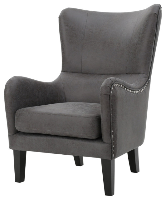 Lorenzo Contemporary Wingback Club Chair With Nailhead Trim
