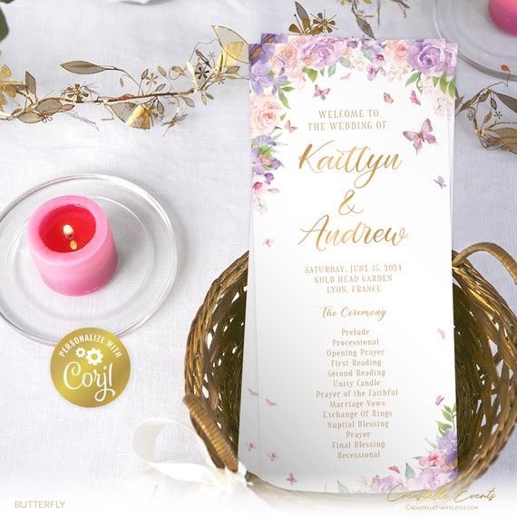 Butterfly Wedding Program Template Gold and Lavender Editable Etsy