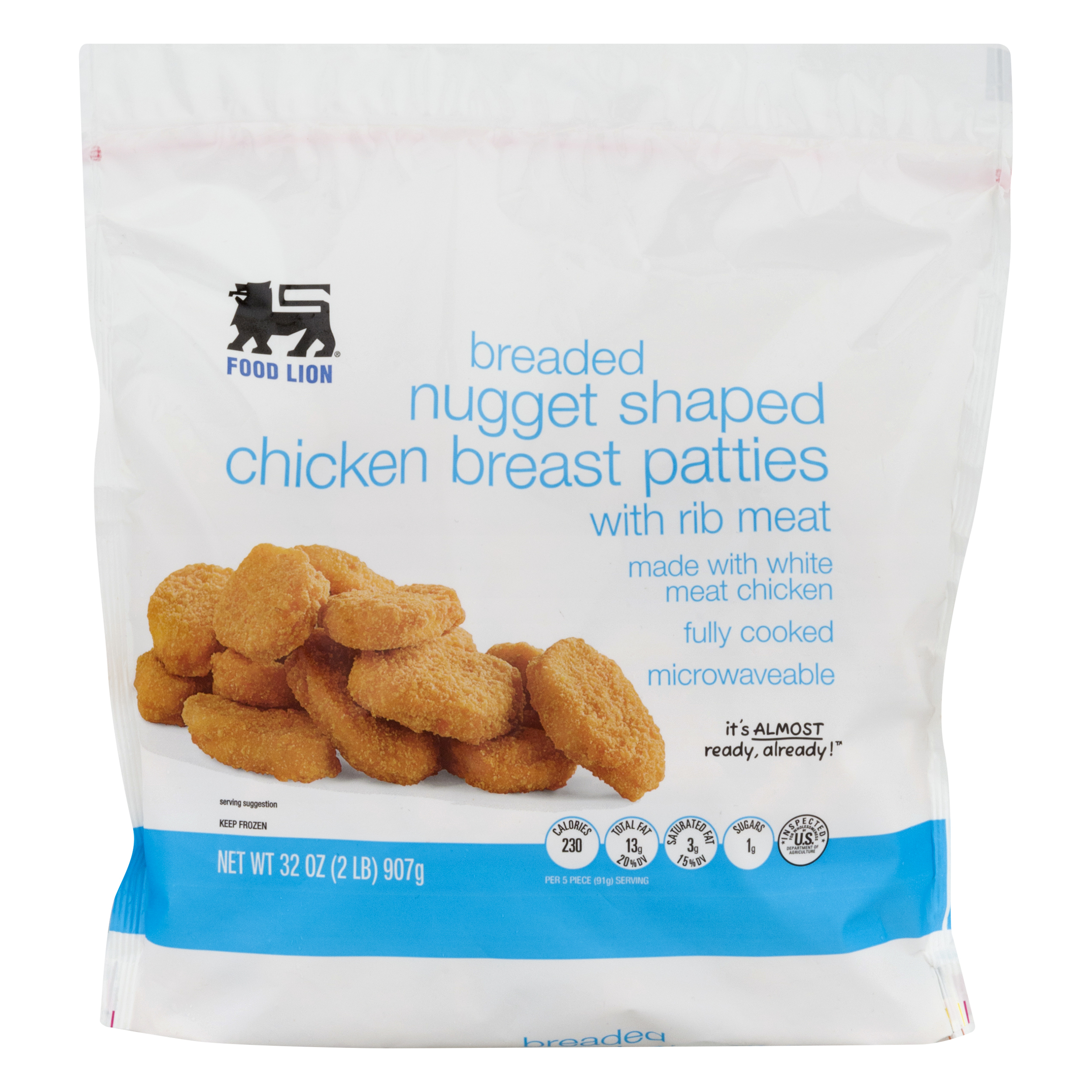 Food Lion Chicken Breast Patties, Breaded, Nugget Shaped, with Rib Meat