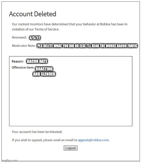 the 10th ban on roblox Imgflip