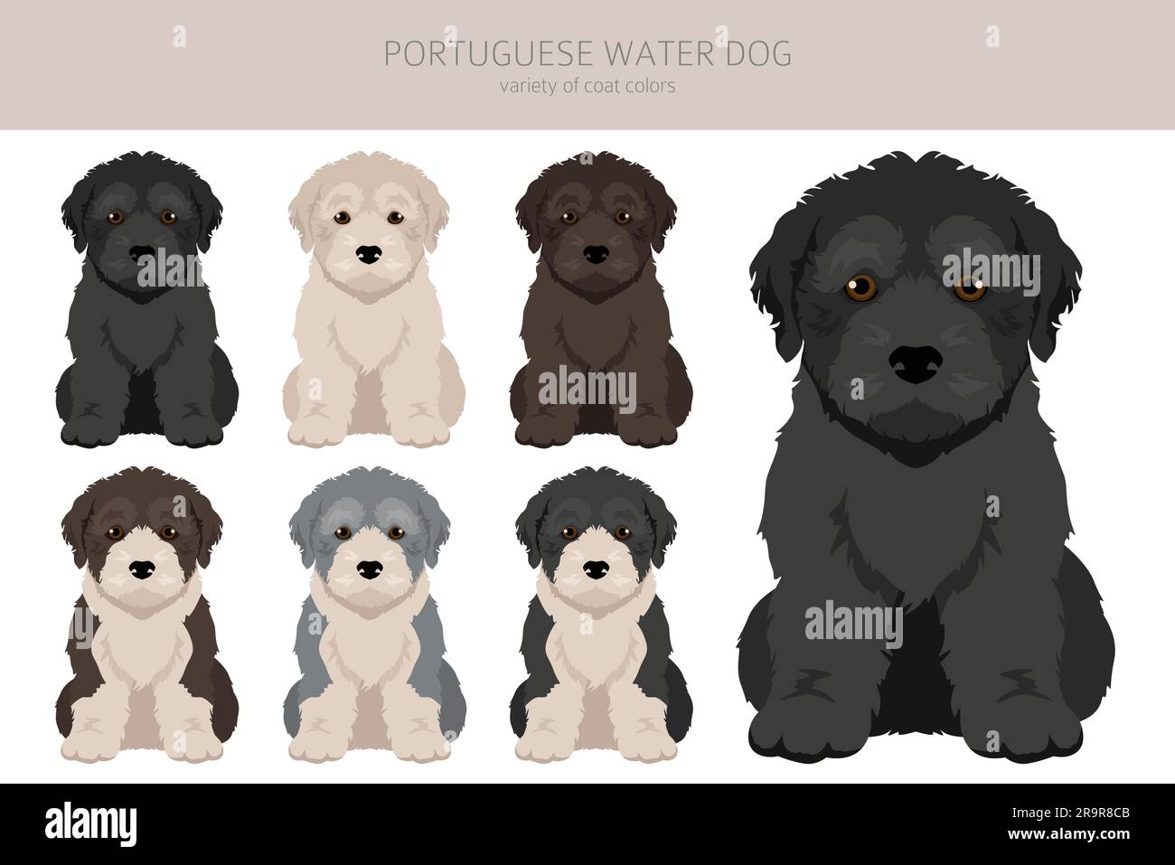 Portuguese Water Dog Clipart. Different Poses, Coat Colors Set Stock Portuguese Water Dog Coat Change when it comes to coat types, portuguese water dogs offer two distinct options: The color change will stabilize when they reach adulthood, but just like humans, you’ll notice that their color changes as they grow older and go grey. the portuguese water dog’s coat is a distinguishing feature, offering a variety of colors and patterns that not only. Portuguese Water Dog Coat Change.