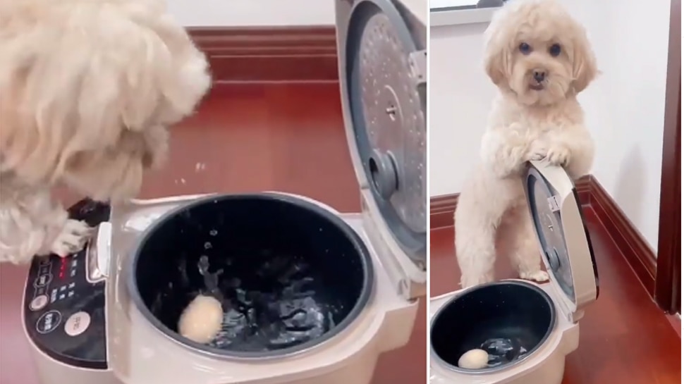 Viral video of clever dog, who is boiling egg himself ये कुत्ता खुद