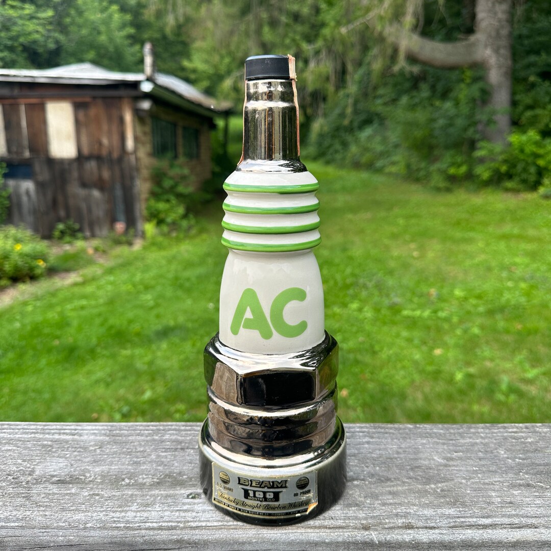 1977 Jim Beam "AC Spark Plug" Decanter EBTH Ac Spark Plug Jim Beam Decanter Embossed on the bottom is creation of james b beam distilling company 1977. A sleek decanter crafted in a white, green, and silver coloration, designed in the shape of a spark plug. Hi, you are bidding on an ac delxo spark plug shaped jim beam decanter. This decanter from 1977 is in good condition. Find many great new & used. Ac Spark Plug Jim Beam Decanter.