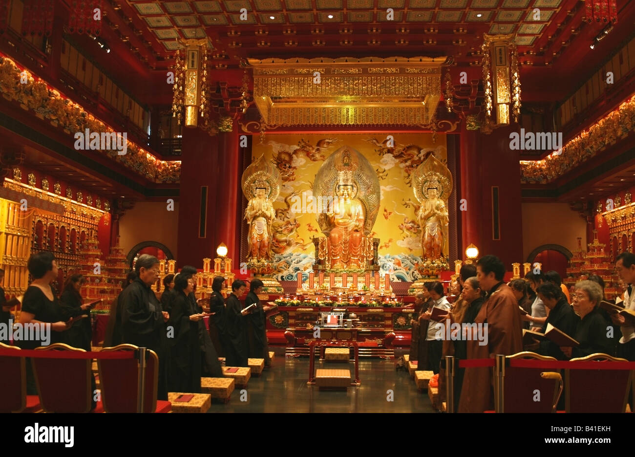 Buddhist followers during a service at The Buddha Tooth Relic Temple, Singapore, South East Asia