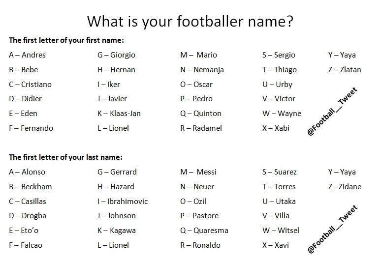 What is your footballer name? >>