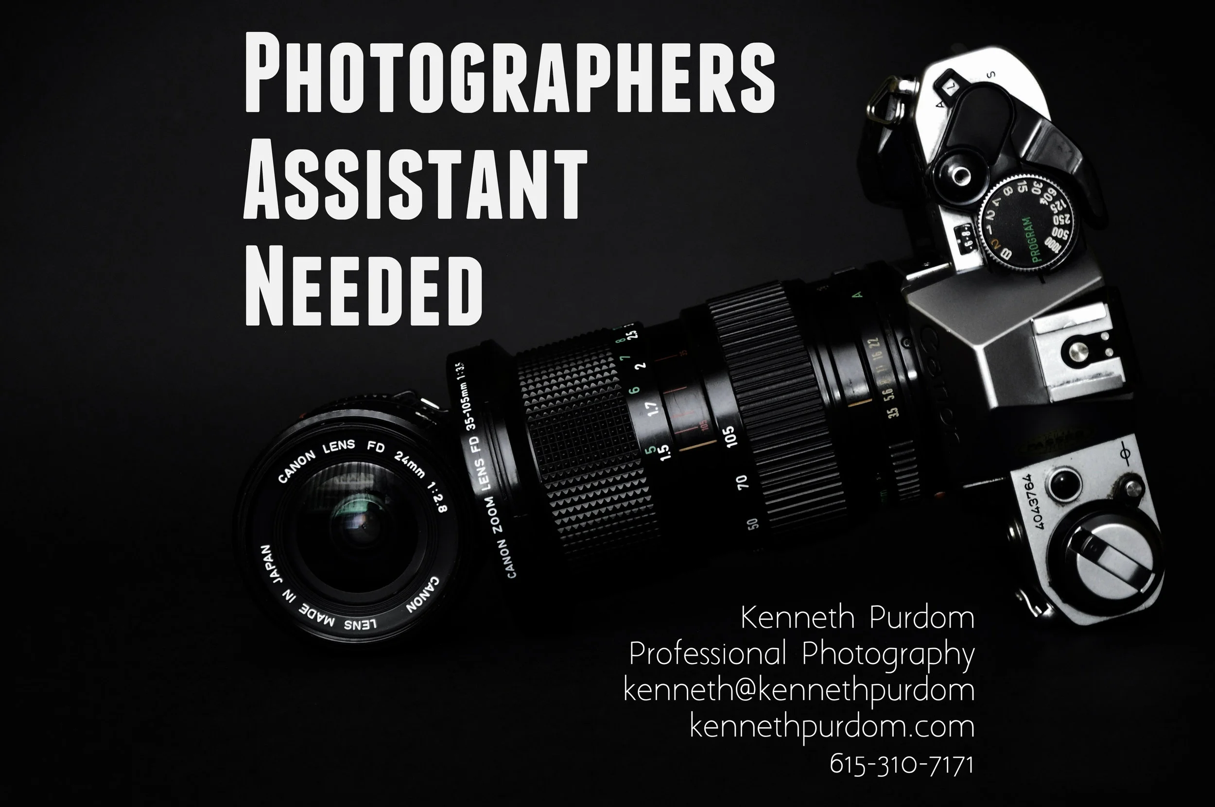 Assistant Photographer Needed — Purdom Photography Video