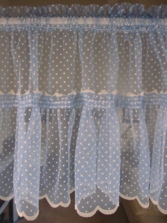 Vintage Swiss Dot Curtains Cafes Valance 3 Blue Swiss Dot