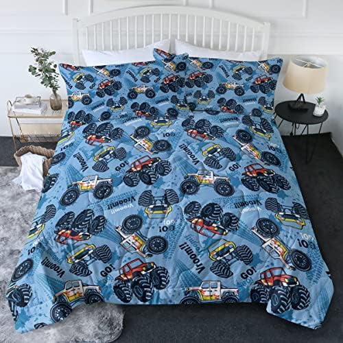 Truck Comforter Set for Boys Kids Teens Blue Monster Truck Cars Bedding Sets Cute Truck Printed