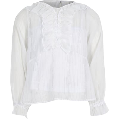 Girls white ruffle peplum blouse River Island