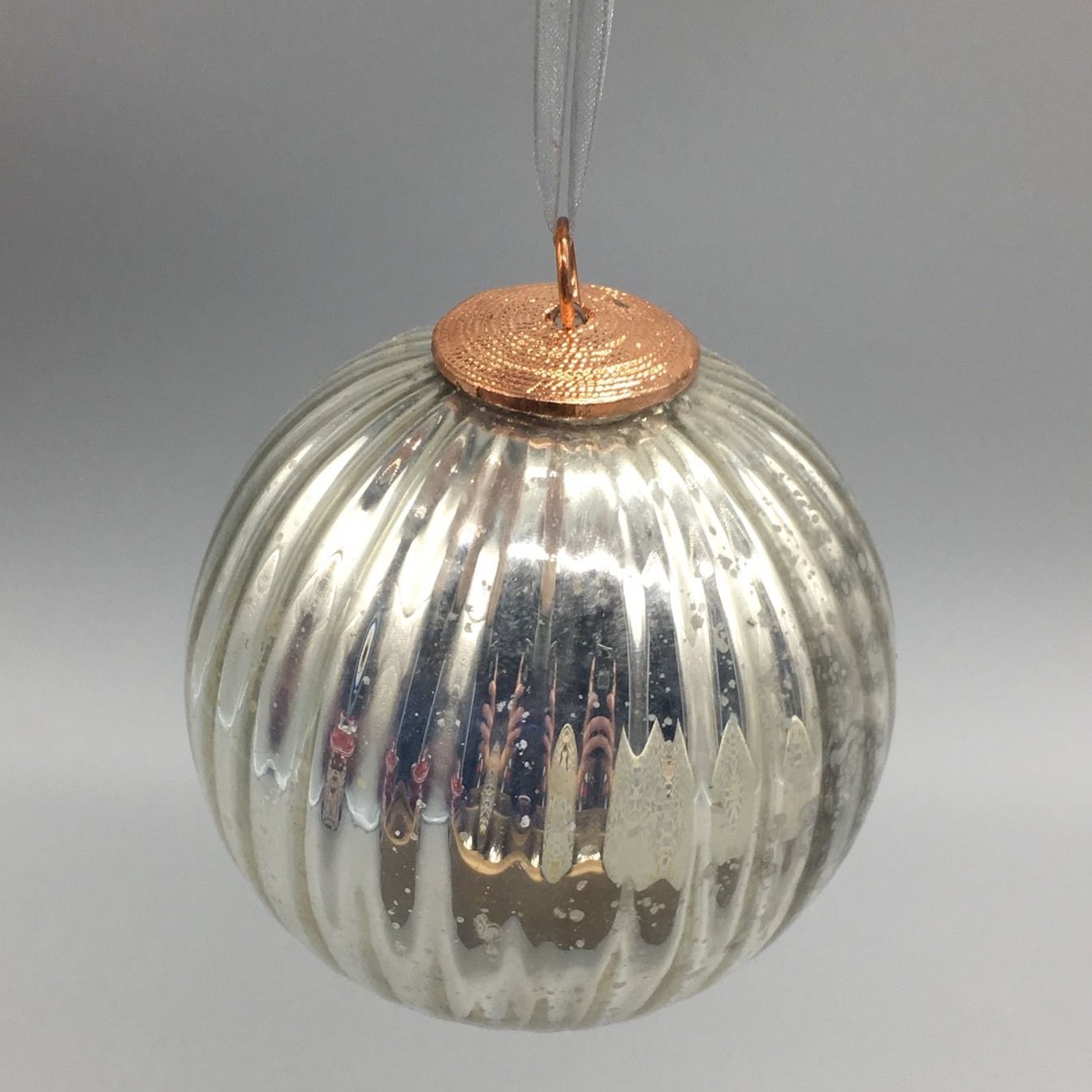 x4 Cynthia Rowley Christmas Silver Mercury Glass Ornament Set Copper 4