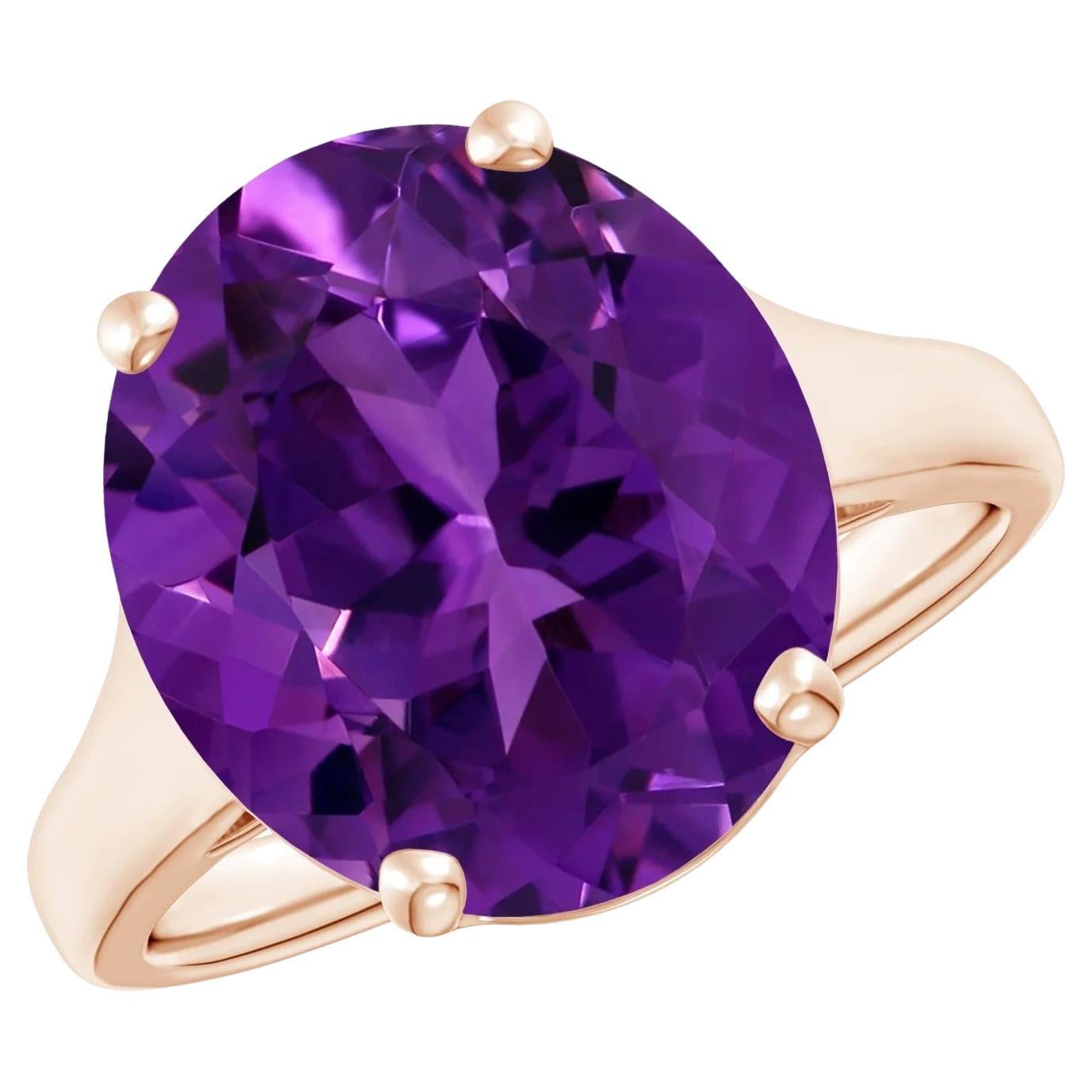 Customizable GIA Certified Natural Flat Amethyst Solitaire Ring in