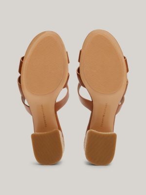 Rope Block Heel Cage Leather Sandals Brown Tommy Hilfiger