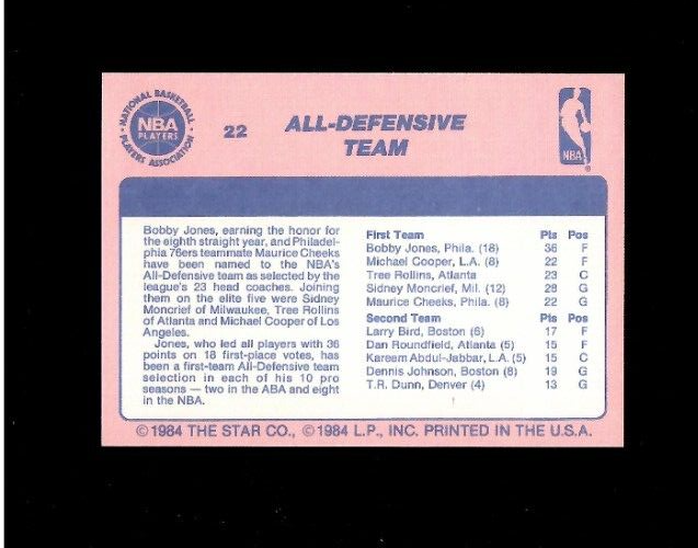 1984 Star Company Awards Banquet All Defensive NBA Card 22 Sidney