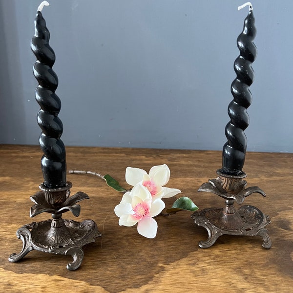Vintage candle holder iron / black metal wrought iron cast Etsy Candle Holder Cast Iron perfect for any tuscan table setting, decadent wine bar decor or classy outdoor dining design, our wrought iron and metal candle holders, floor sconces,. check out our cast iron candle holders selection for the very best in unique or custom, handmade pieces from our. elevate your space with our twilight black pillar candle holder, crafted from durable. Candle Holder Cast Iron.
