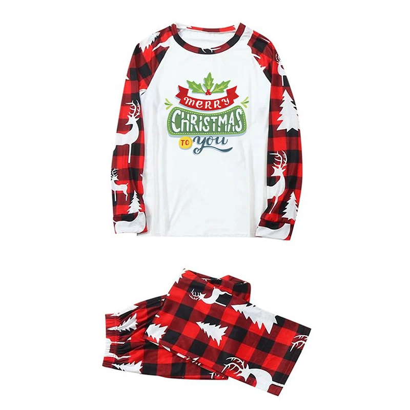 Hot Sale Custom Christmas Pajamas Blank White & Red Plaid Xmas