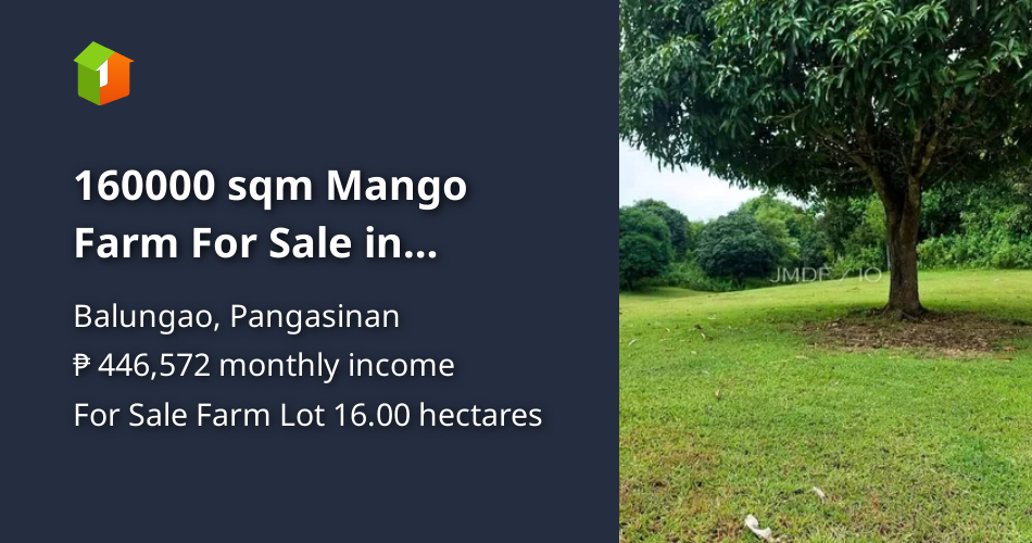 47Hectare Mango Farm + 53Hectare Roadside Land in Balungao, Pangasinan Mango Farm For Sale In Pangasinan Philippines Mango farm for sale 50,000 sqm. With 300+ fully grown and fruit bearing mangoes. With over 2500 mango trees and other fruits. 1.7 hectares mango farm for sale in balungao pangasinan. With 300+ fully grown and fruit bearing mangoes tcp: Corner lot with 298m frontage along concrete main. There are 124 buyers looking for lots, lands, and farms for sale. Mango Farm For Sale In Pangasinan Philippines.