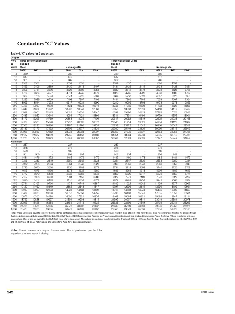 Table 4. "C" Values For Conductors PDF
