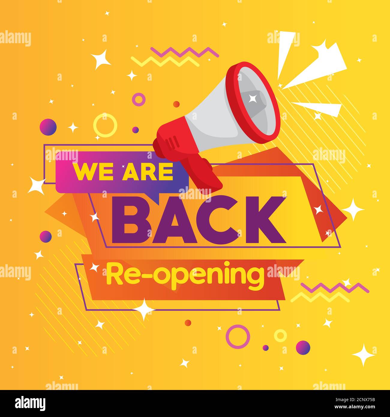 banner of we are back reopening with megaphone Stock Vector Image & Art