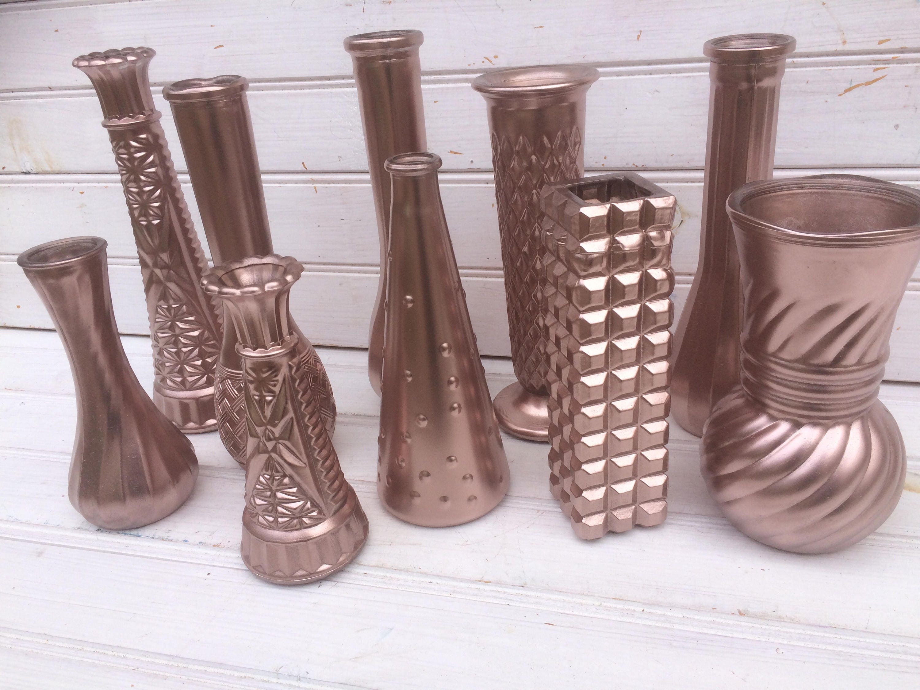 Set of 5 Rose Gold Painted Vases Wedding Decor Shower Decor Etsy Rose Gold Painted Vases Enjoy free shipping on most stuff, even big stuff. Shop wayfair for the best rose gold vase. A rose gold vase — often made from metal, bronze and ceramic — can elevate any home. Forever rose is the world's longest lasting rose. Check out our rose gold vases selection for the very best in unique or custom, handmade pieces from. Rose Gold Painted Vases.