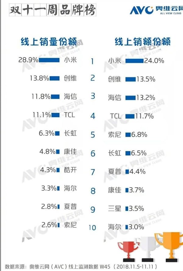 Xiaomi TV sales are twice as much as the second best brand in the