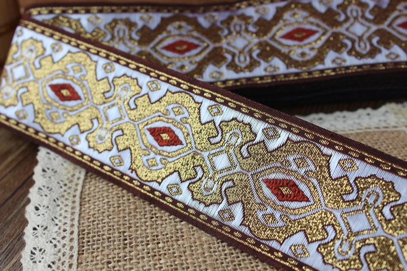 10 yards wide 4.8cm Woven Jacquard cotton Ribbon Geometric Totem gold